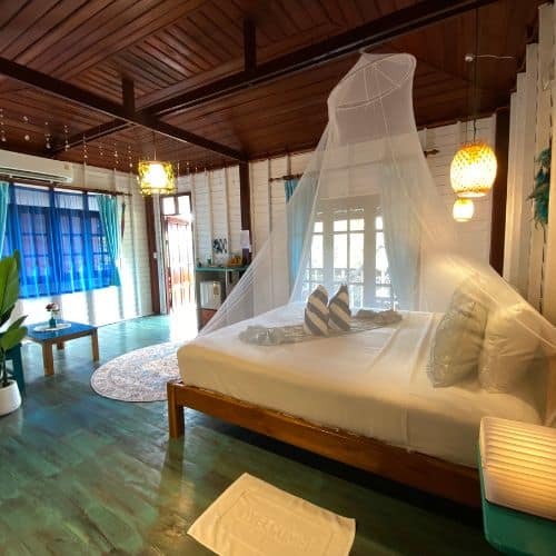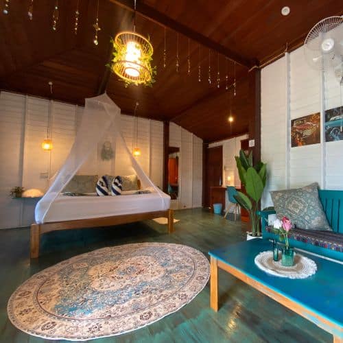 Enjoy a private and intimate escape at Baan Kiao. Our bungalows for couples are located away from the family areas, ensuring a quiet sanctuary surrounded by nature. Savor our unique breakfast and a menu featuring authentic Thai and Burmese flavors, providing a delicious and peaceful dining experience just steps from your room and the beach.