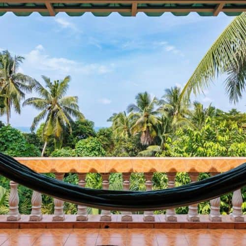 tropical surroundings.