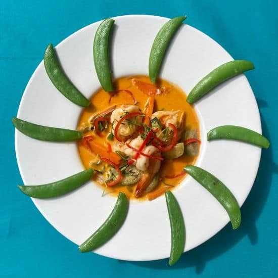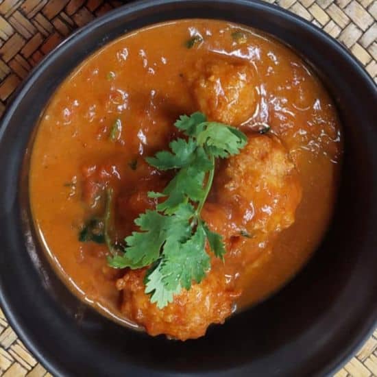 Chicken meatball with slow-cooked tomato, masala spices, chili, ginger, garlic, onion, coconut